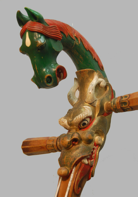 あれ、馬[うま]を守[まも]る龍[りゅう]もいるよ。見[み]える? - 糸巻[いとまき]
