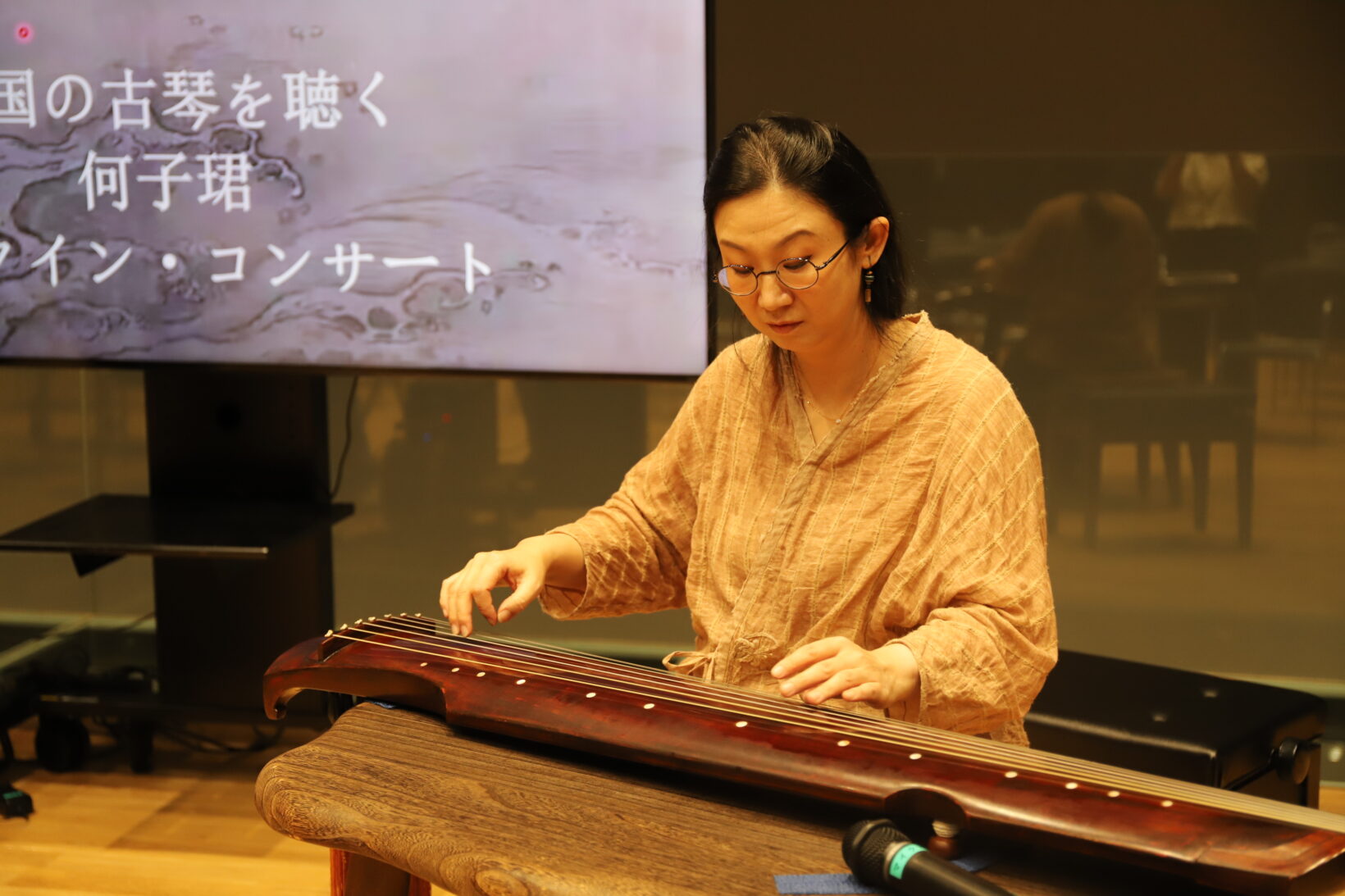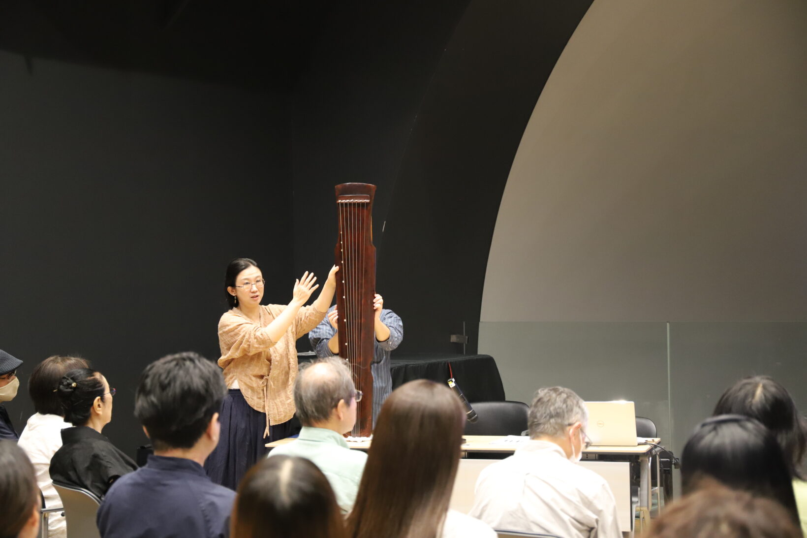 2025年9月24日(水)18時より、公開講座「中国の古琴を聴く 何子珺 トークイン・コンサート」を開催しました。前半は琴独特の楽譜を読み解き演奏にどう繋げるか、といった興味深いお話。後半では古典から新作まで趣きの異なる4曲の演奏をお願いし、お客様からは、「マイクを通さない豊かな生音が素晴らしかった」とのお声をいただきました。